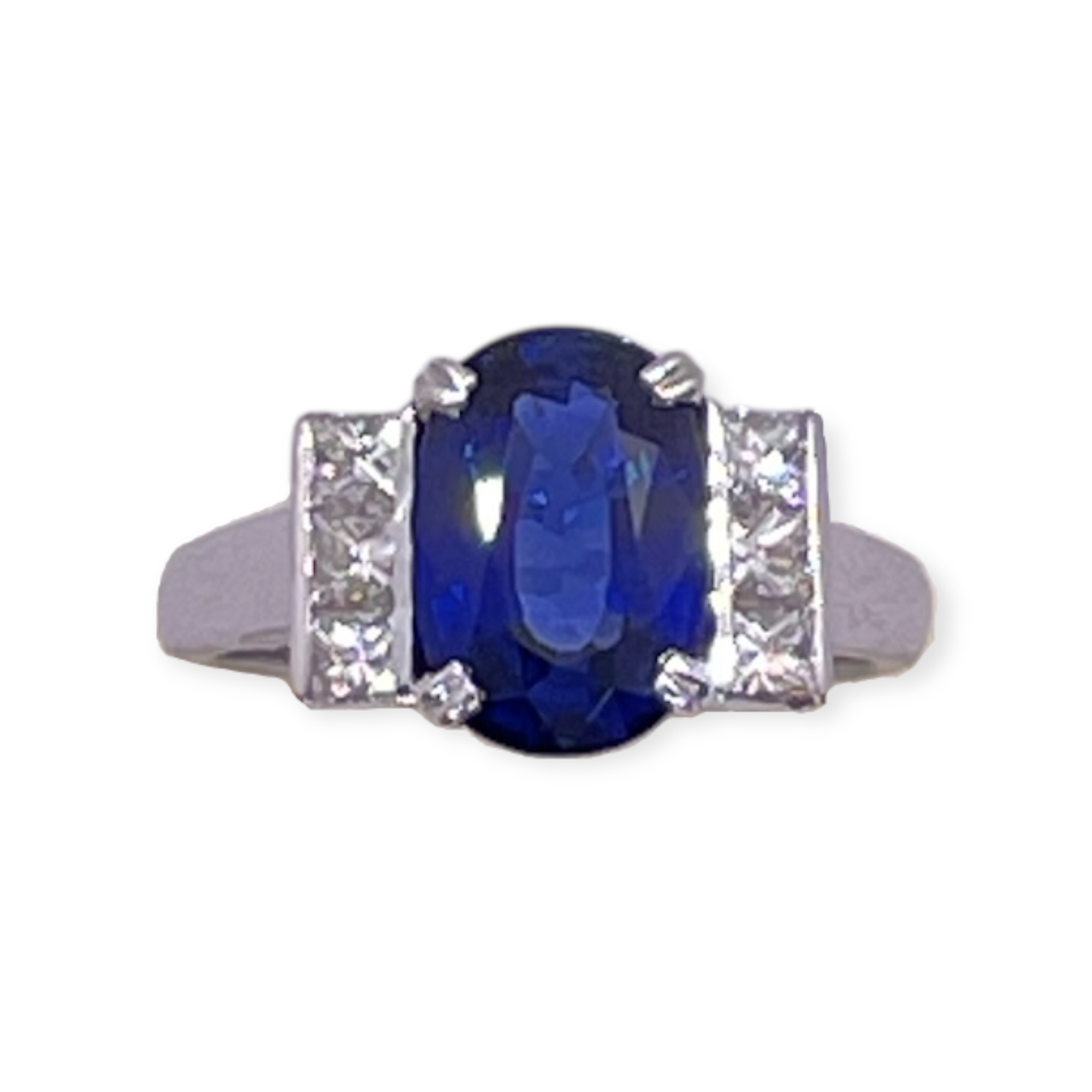 Blue Sapphire and diamond ring in 18Kt White gold | A8549