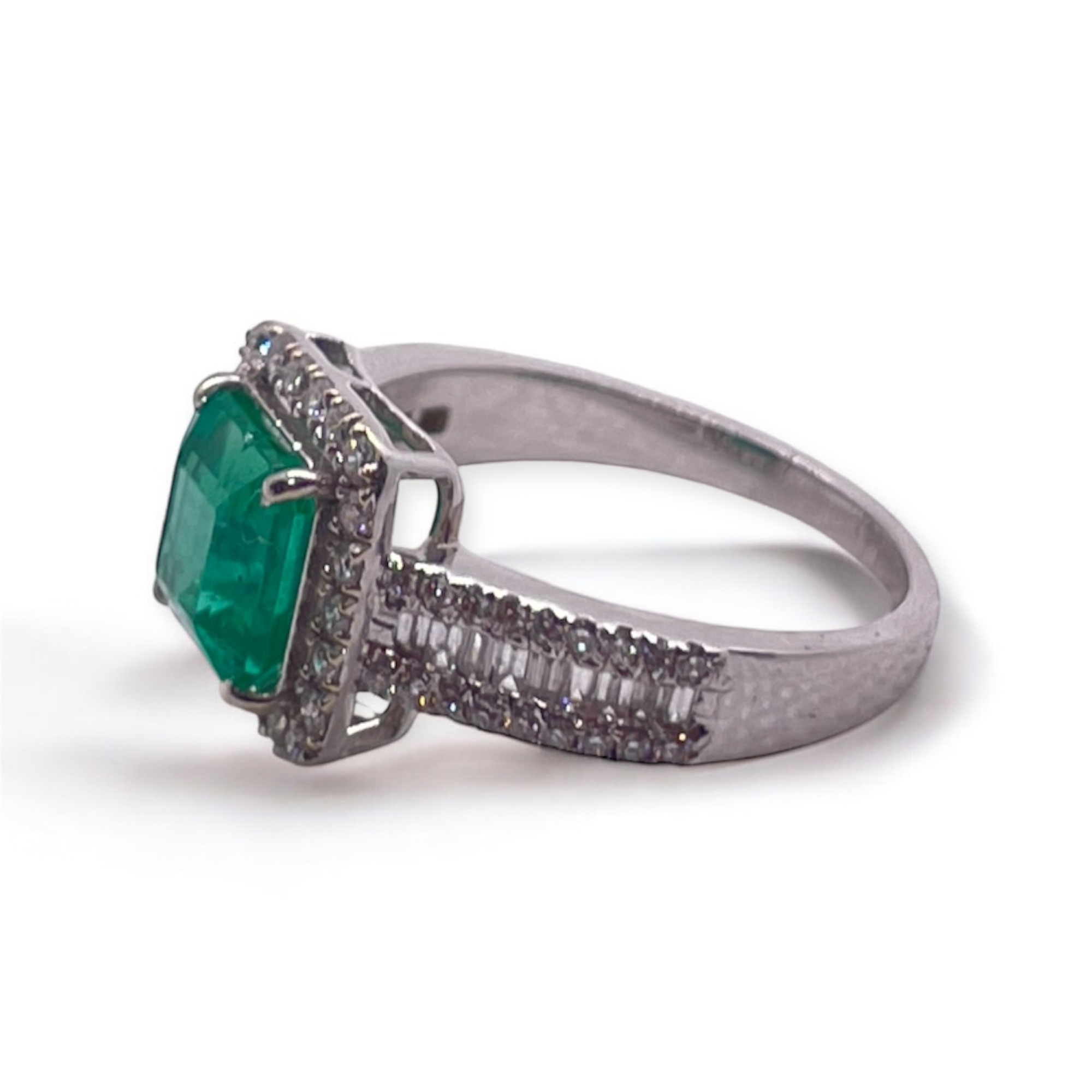 / Emerald and diamond ring in 18Kt White gold | A13607