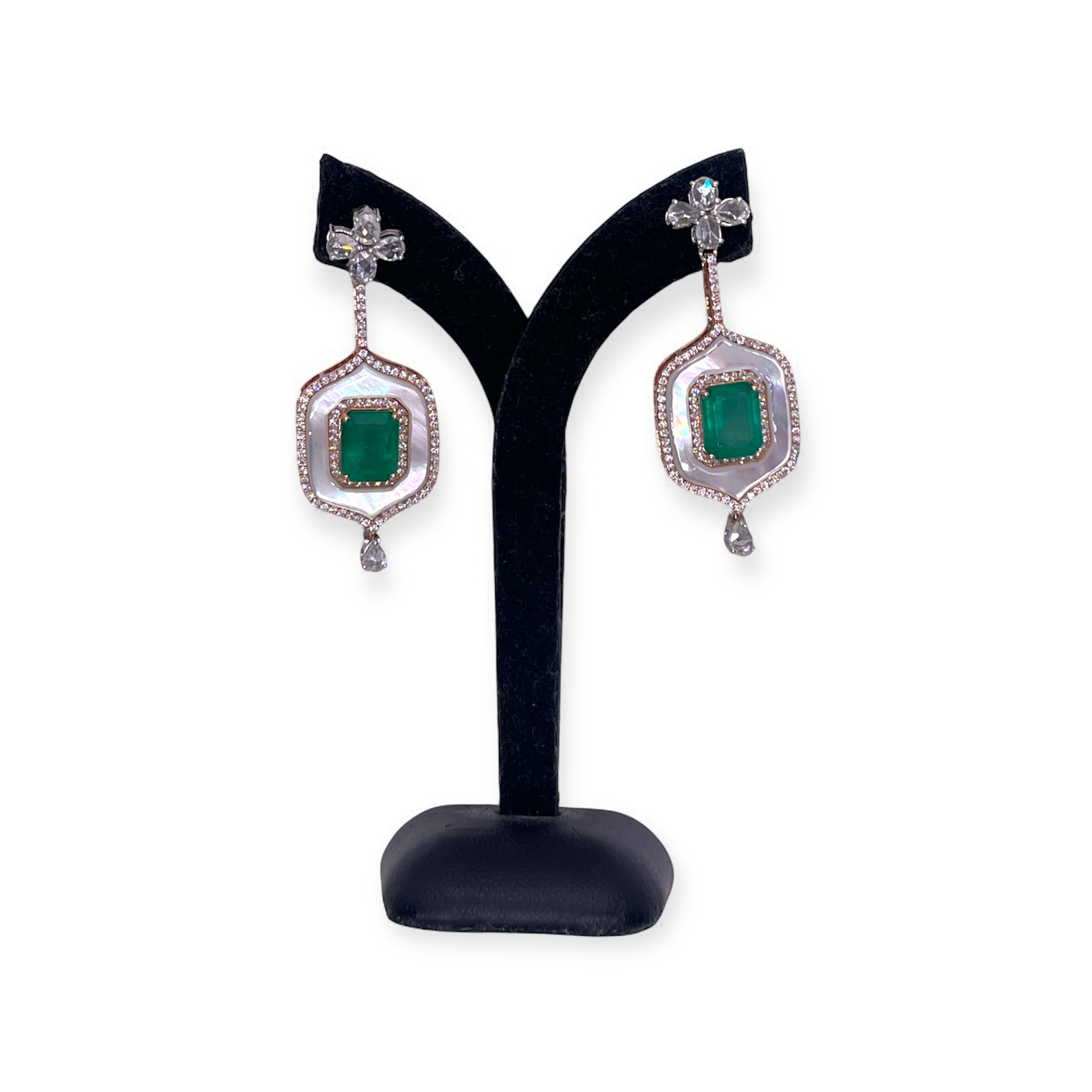 Contemporary Emerald and Diamond cluster ring in 18Kt White gold | A13830