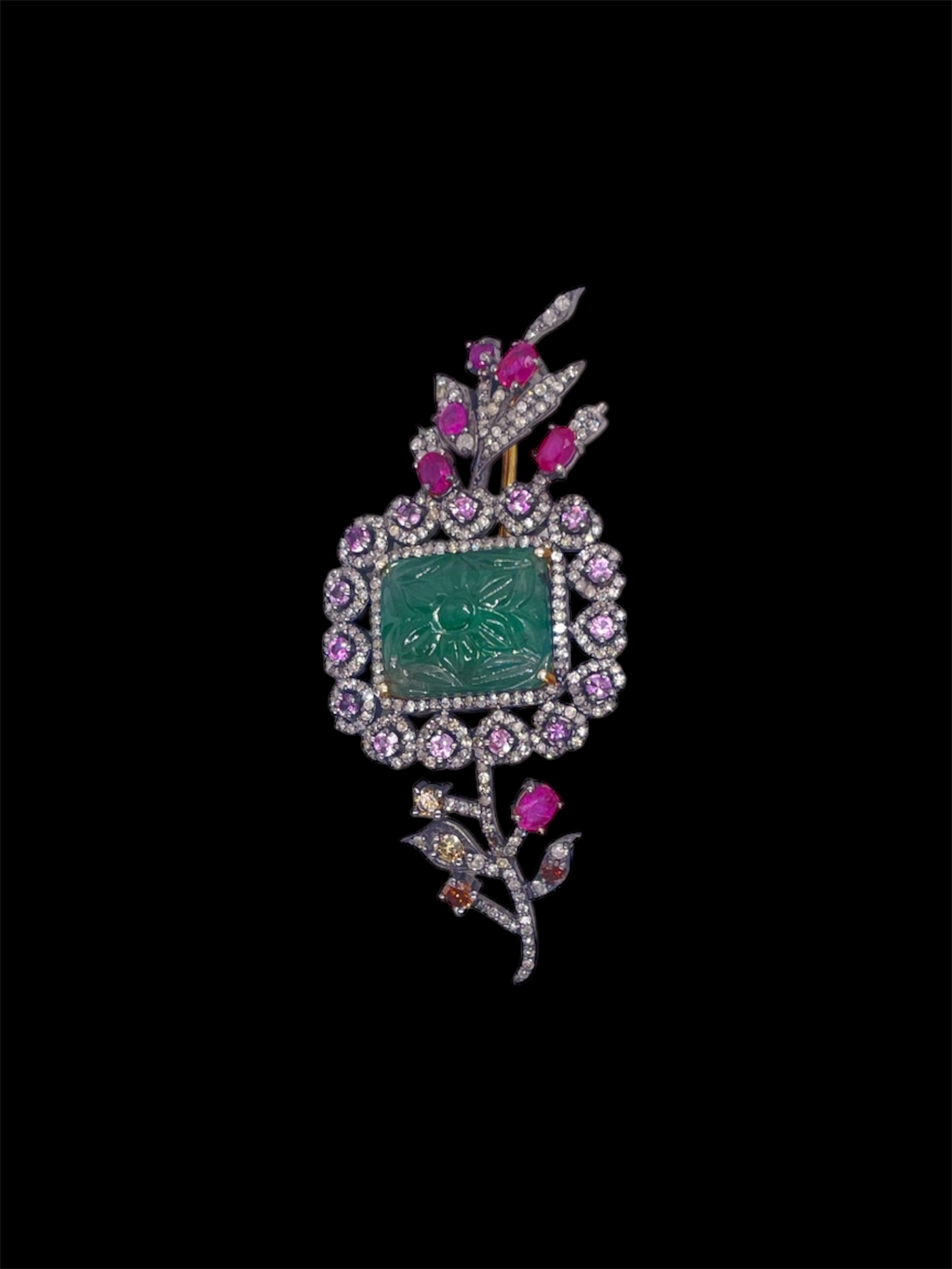 Classic Turquoise, Emerald and Diamond brooch | A13858