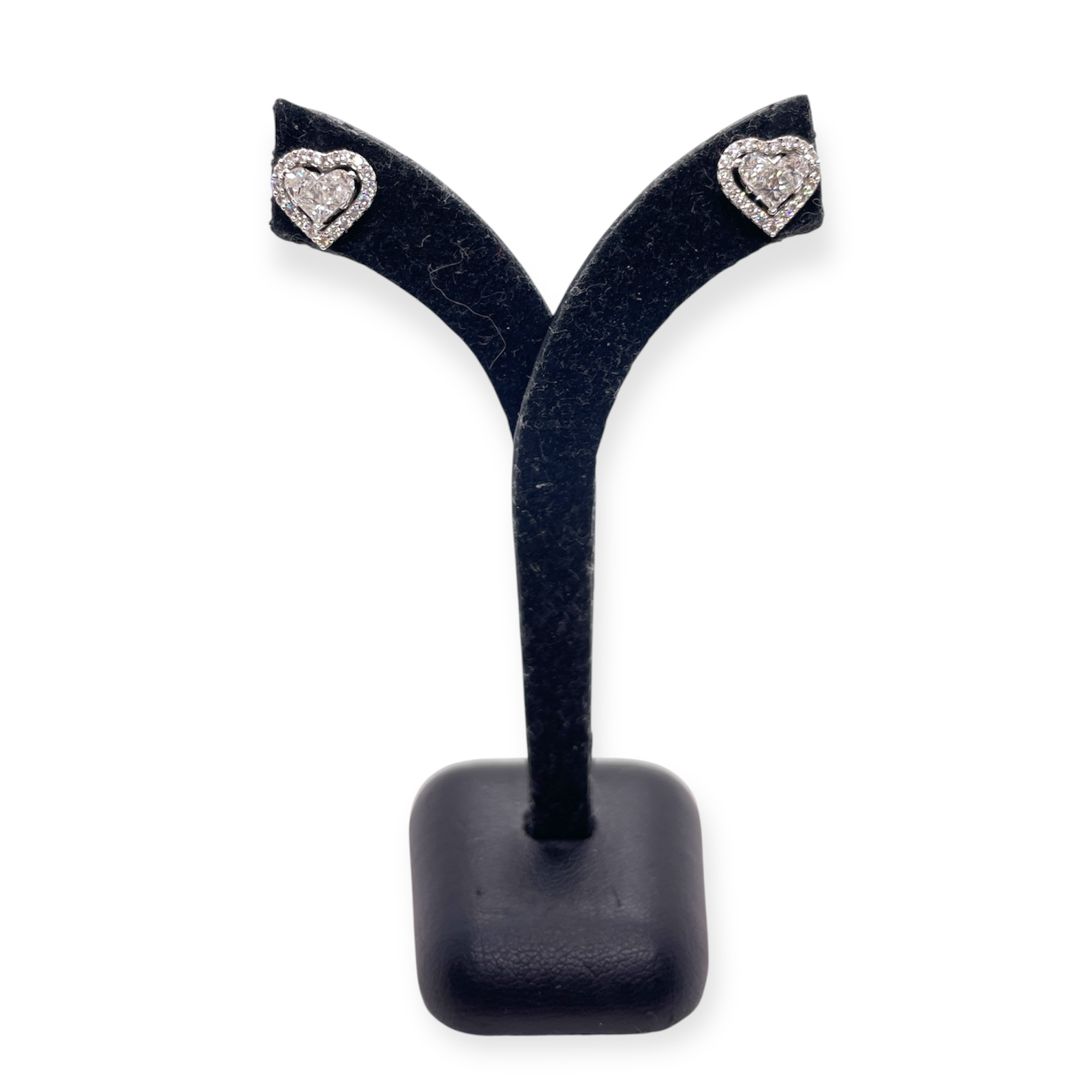 A beautiful pair of diamond studs in 18 kt white gold. This design features a uniqe combination of D cut diamonds, Pricess cut and round cut diamonds.