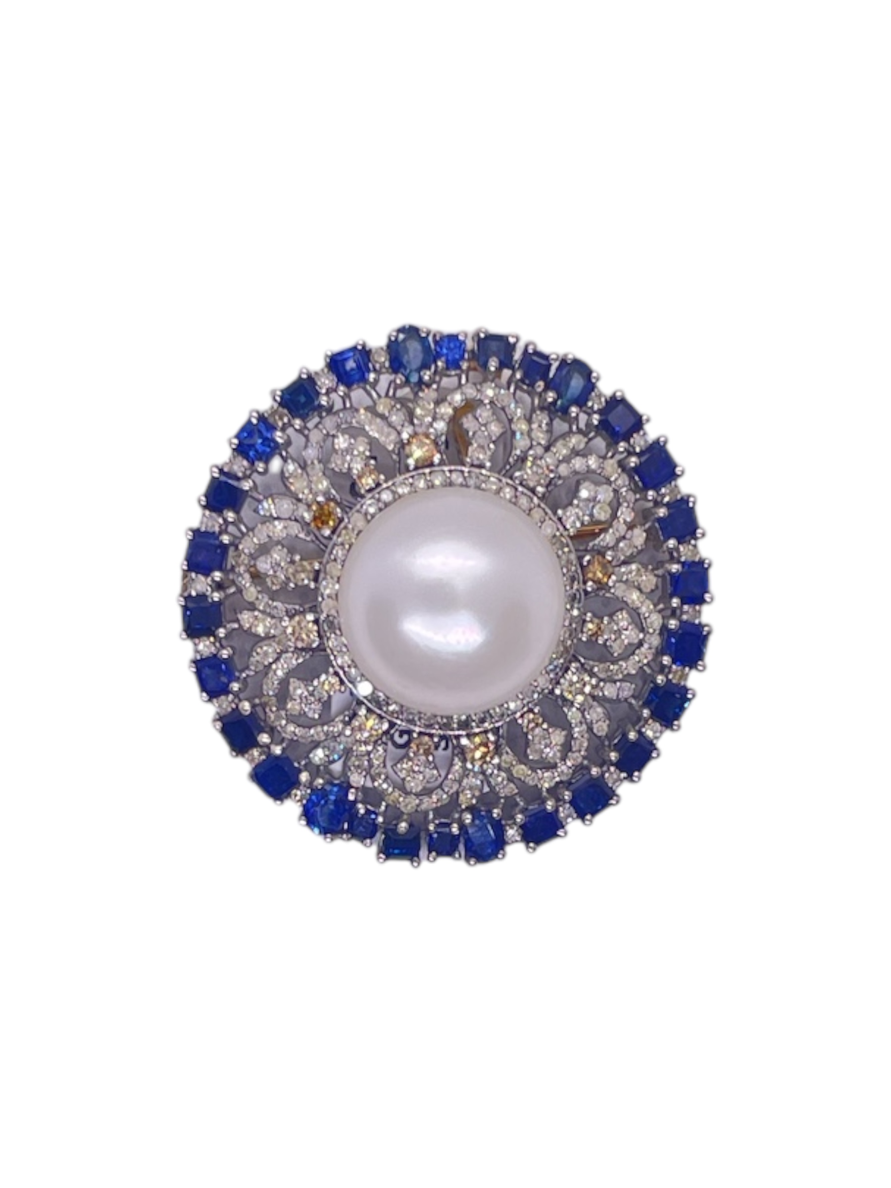 / Imperial Pearl, Sapphires and Diamonds Brooch | A13570