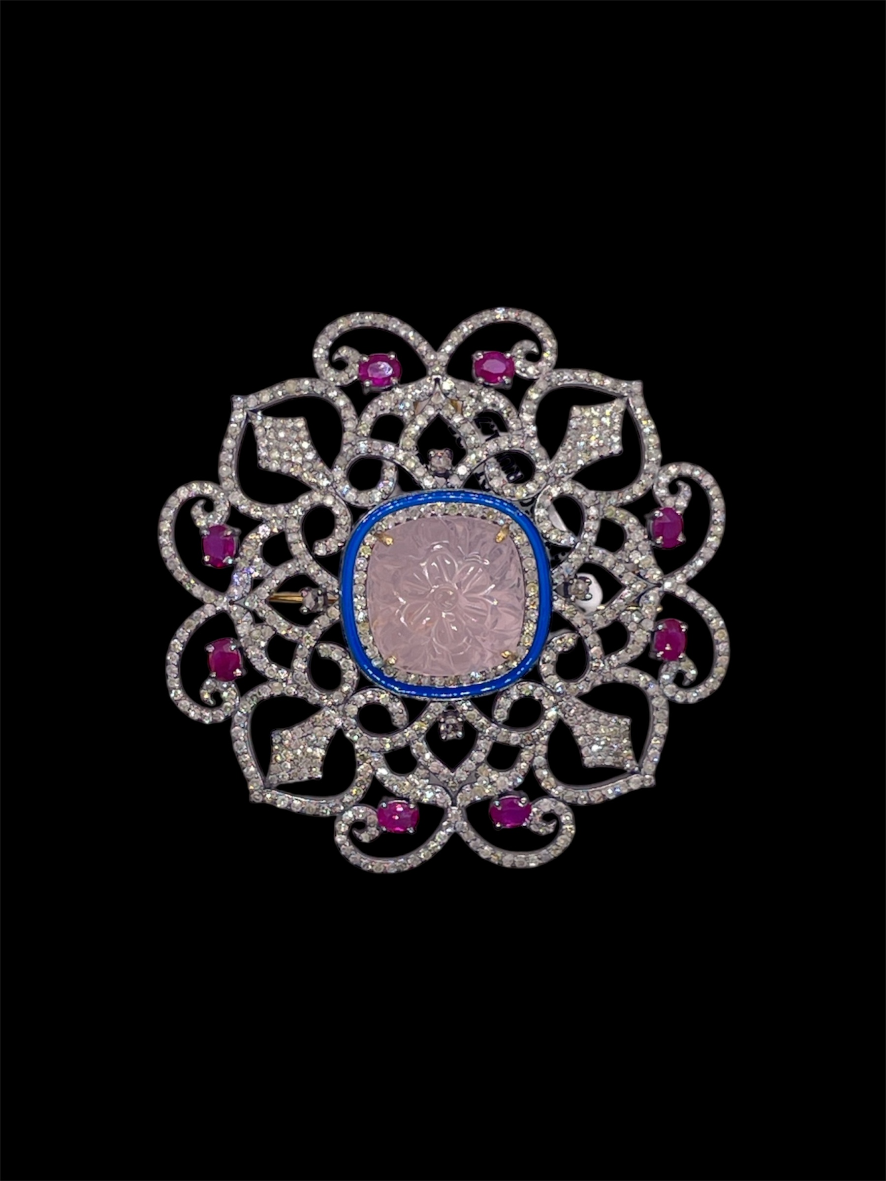 / Imperial Rose Quartz, Ruby and Diamonds brooch | A13575