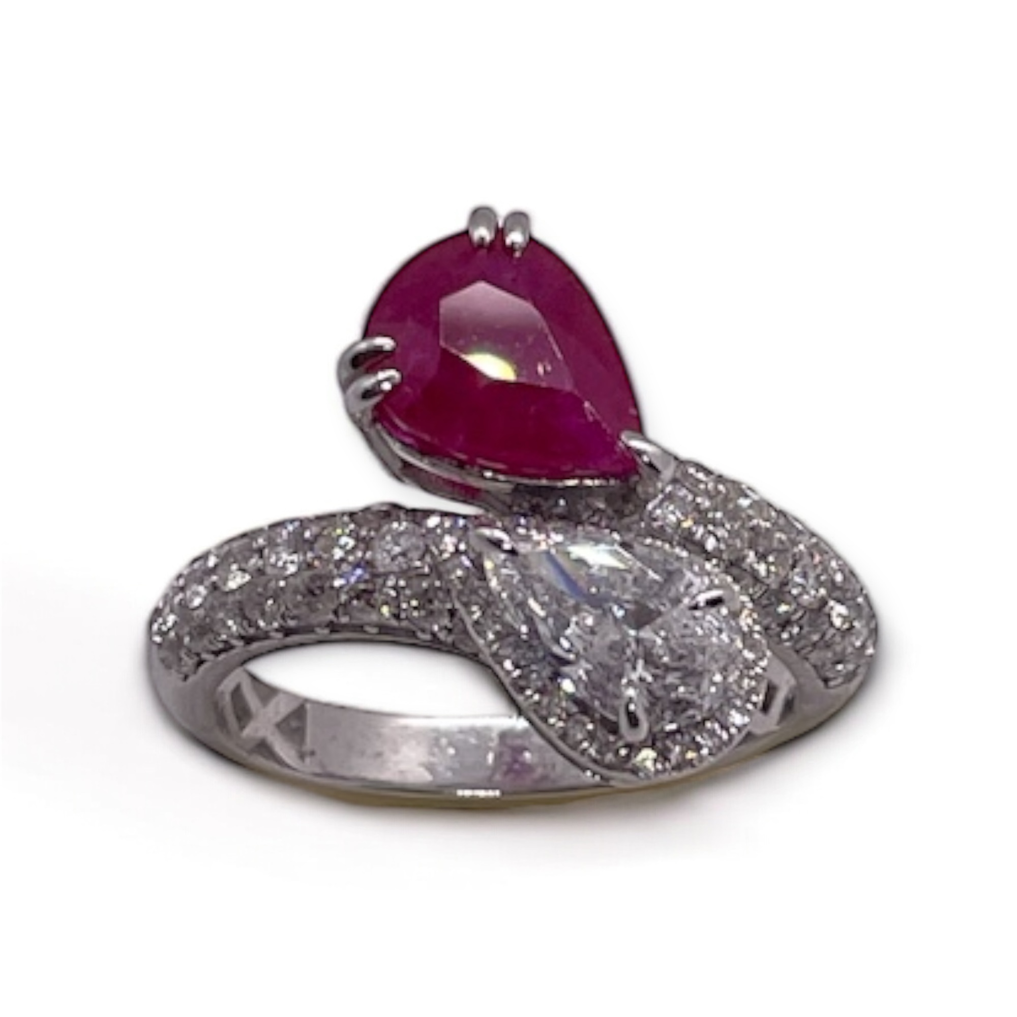 / Pear cut Ruby and diamond ring in 18Kt White gold | A13077