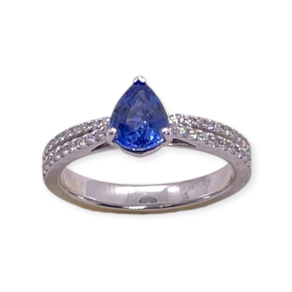 / Pear Sapphire and diamond ring in 18Kt White gold | A13835